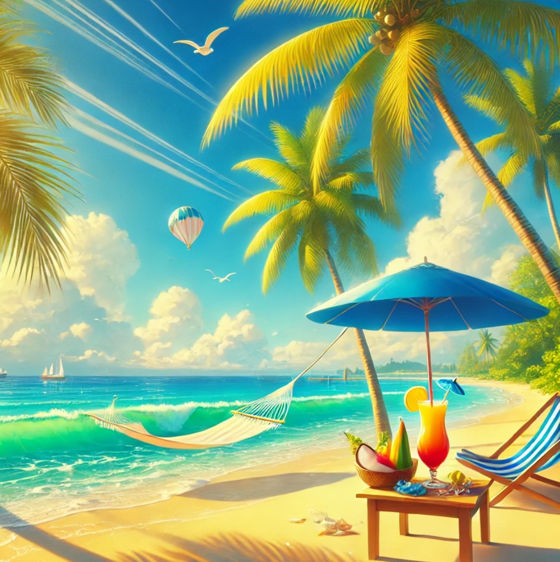 푸른 바다와 끄거운 태양 시원한 바림이 부는 계정, 여름 들뜬 마음으로 여행을 떠나고 싶은 순간